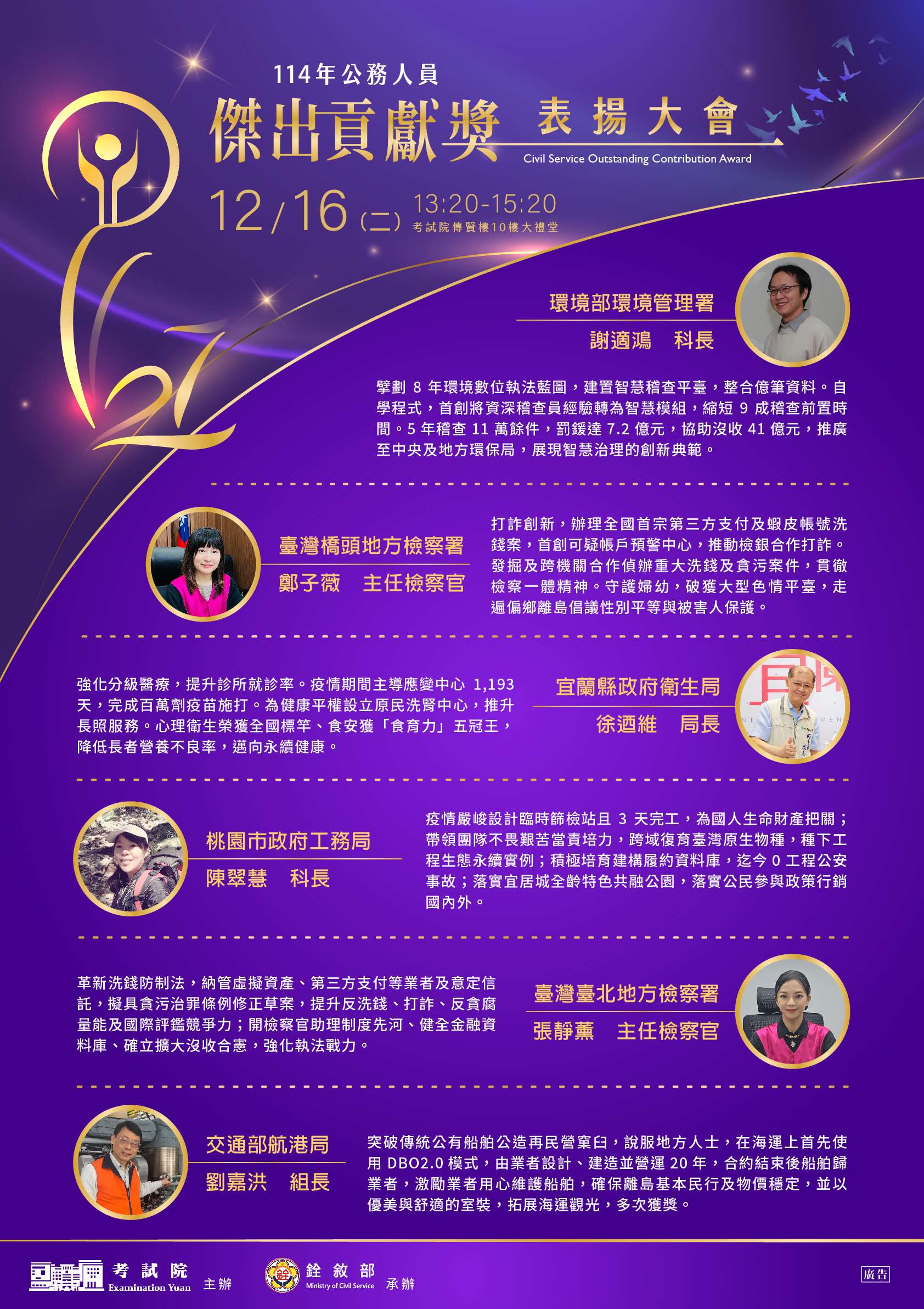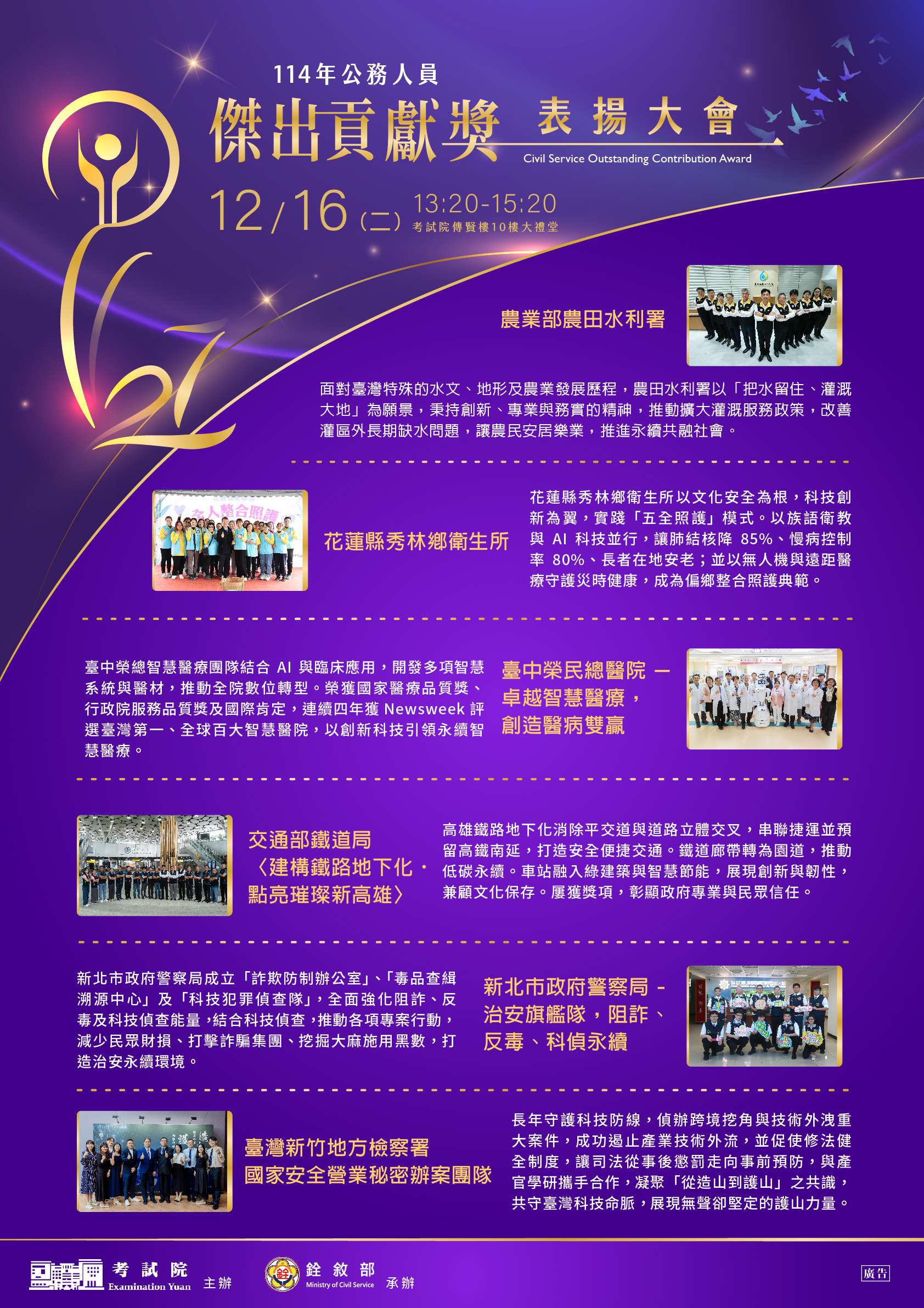 轉知市府函轉請協助公告「114年公務人員傑出貢獻獎表揚大會」電子海報一案