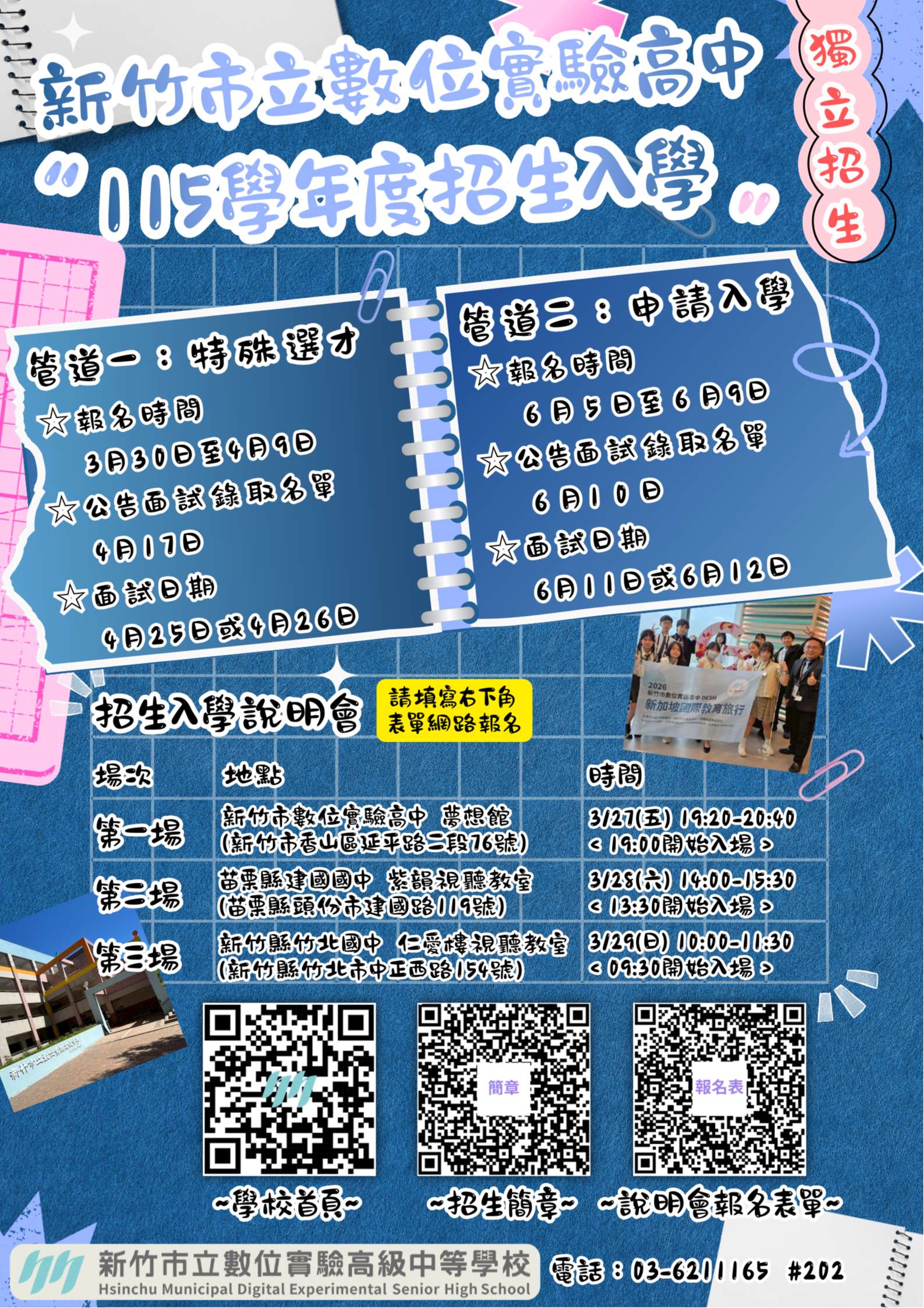 | 一、 | 本校「115學年度招生入學簡章」(附件一)已獲新竹市政府於115年3月18日府教學字第1150051917號函同意備查。 |